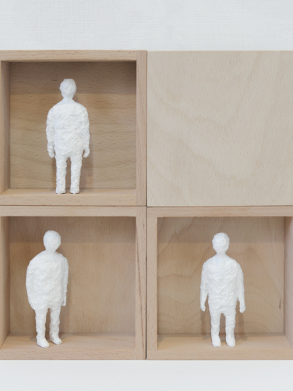 ![]() 2015. Дерево, папье-маше, акрил. Каждая часть — 15 х 15 х 6 см.